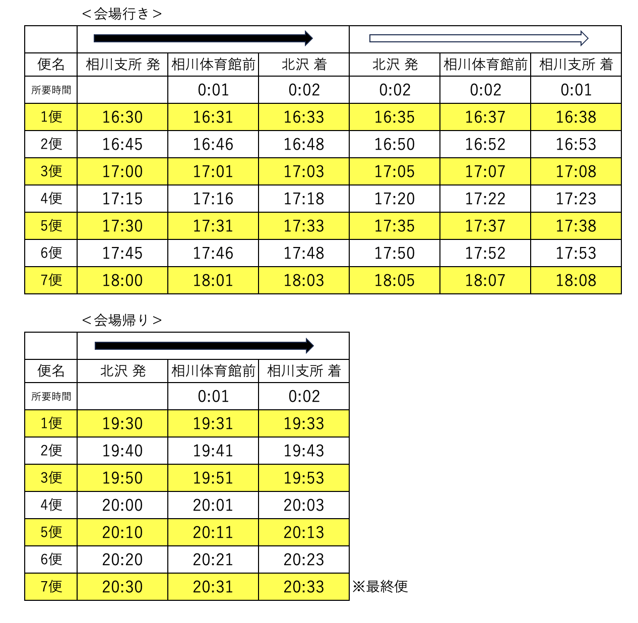 ■ 無料シャトルバスの時刻表