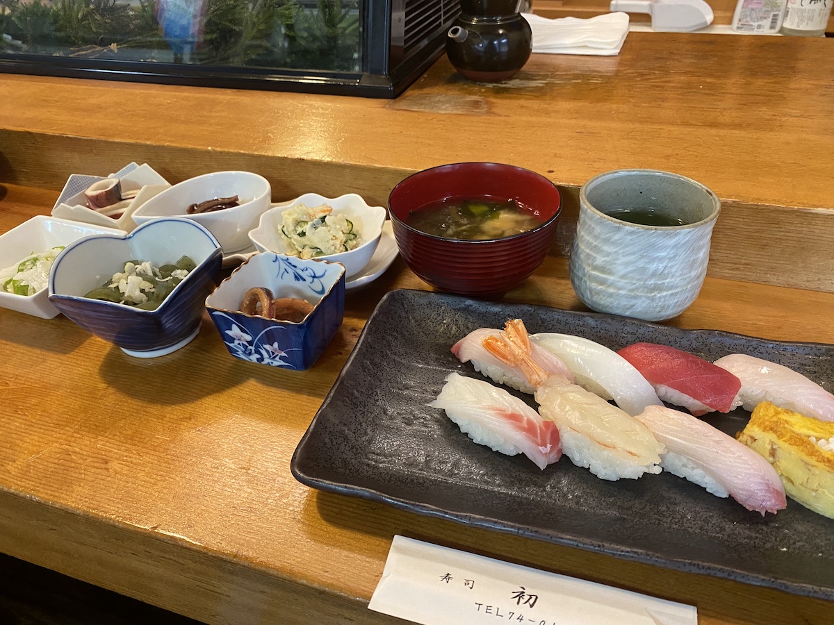 1995年にオープンした寿司初。相川の中心地からは少し離れた場所にある隠れた名店です。板前歴46年の店主が握るお寿司は絶品。また、小鉢料理のバリエーションは相川イチと言っても過言ではないほど。常連さんの中には、お寿司以外の料理を目当てに来る方もいるそうです。少し強面だけど、話すと気さくな店主と笑顔が素敵な奥様が二人で営むお店です。