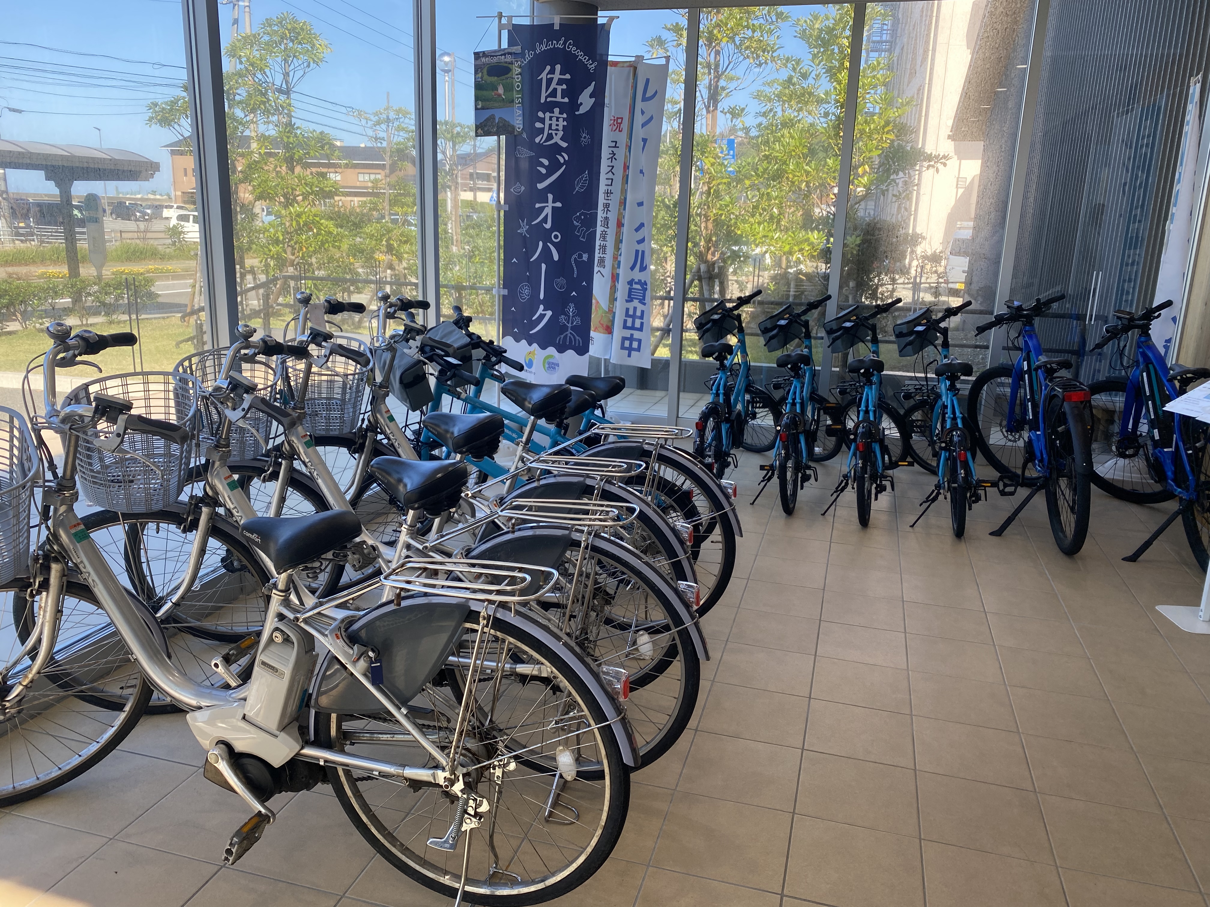 夕陽を見に行く前に、まずは“きらりうむ佐渡”に併設されている、相川観光案内所でレンタサイクルを借りましょう!