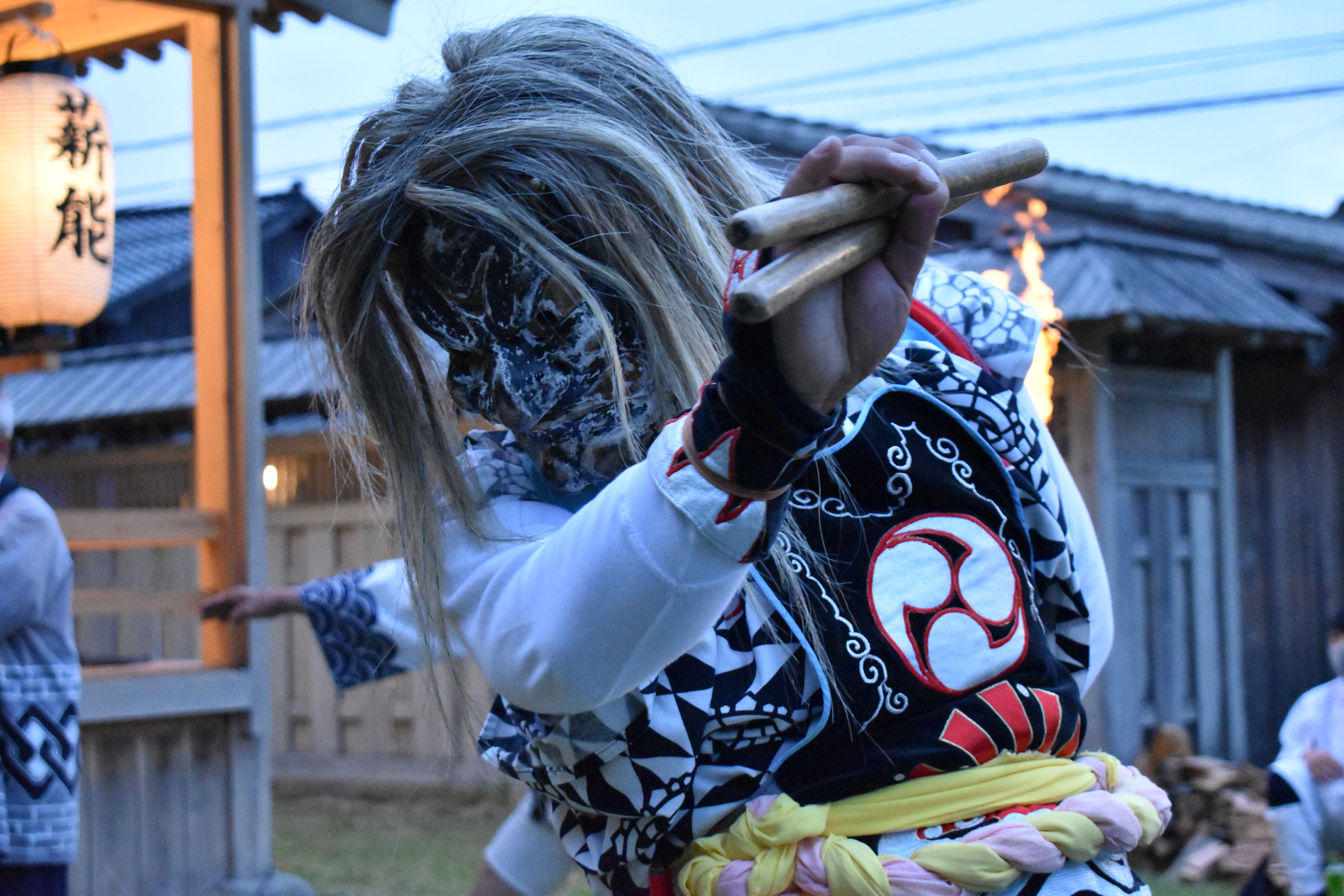 The rarest style is the “Hanagasa-style,” performed only in two villages on the eastern tip of Sado. The Oni are one part of a larger performance that includes a lion dance and a folk song performance.