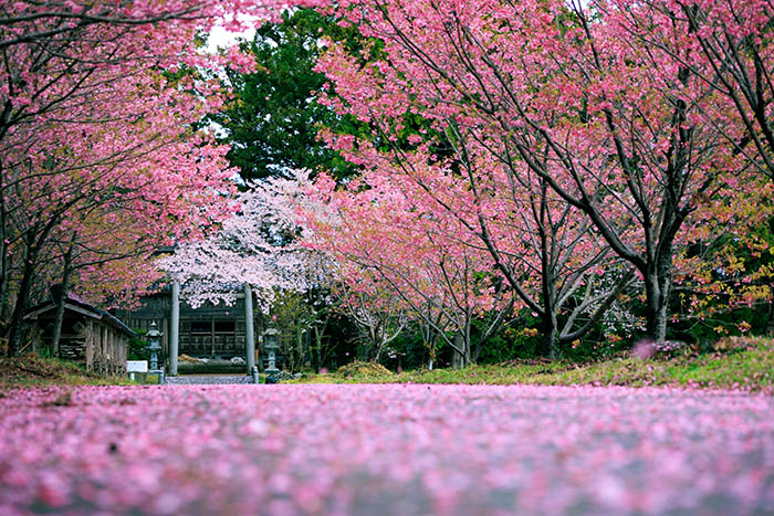 This beautiful rosebud cherry tree, the Tanemaki Sakura, is about 20m high and 6.9 meters in circumference at its base, and is estimated to be over 250 years old! Legend has it that the former chief priest of Osaki’s Uenobo Temple retired to Hojobo Temple in his later years, and when he traveled around the country as an ascetic, he bought a cherry seedling in Yoshino and brought it back here.