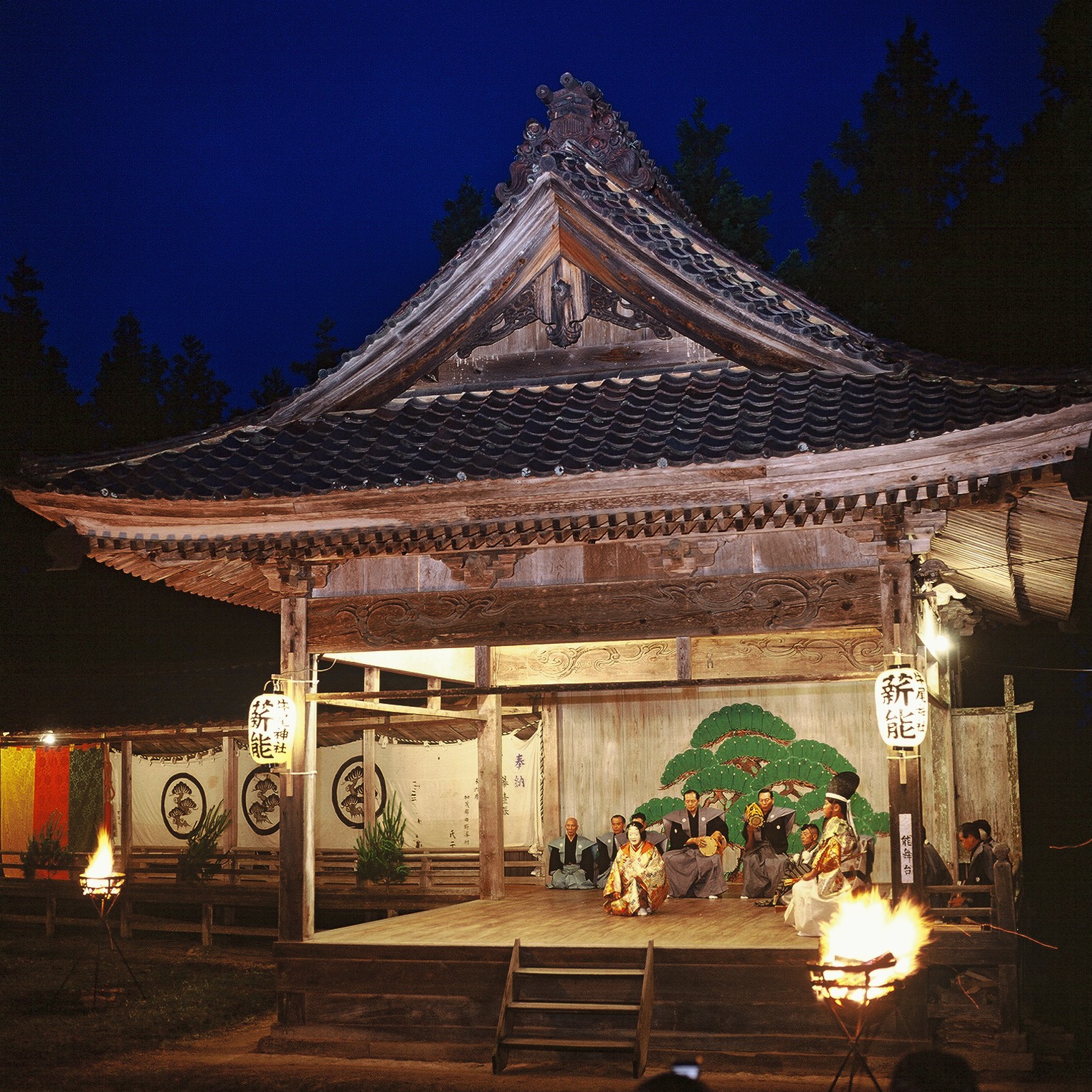 Anyone can enjoy the beautiful art of Noh - even if you don't understand Japanese! This is especially true on Sado Island, where the majority of performances are held outdoors in the evenings and the atmosphere of the performance is half of the magic. It is a special treat to sit with an audience of locals and see a fire-lit Noh performance. As the fires crackle, and the sun sets, you are surrounded by darkness and the performance solemnly begins on the historic stage of a local shrine. The surrounding nature, the sounds of insects, breezes rustling the leaves and branches, and glimpses of the moon, give added impact, making the show even more dramatic. For the full experience, check out the performances below marked 'Fire-Lit Open Air Noh.'