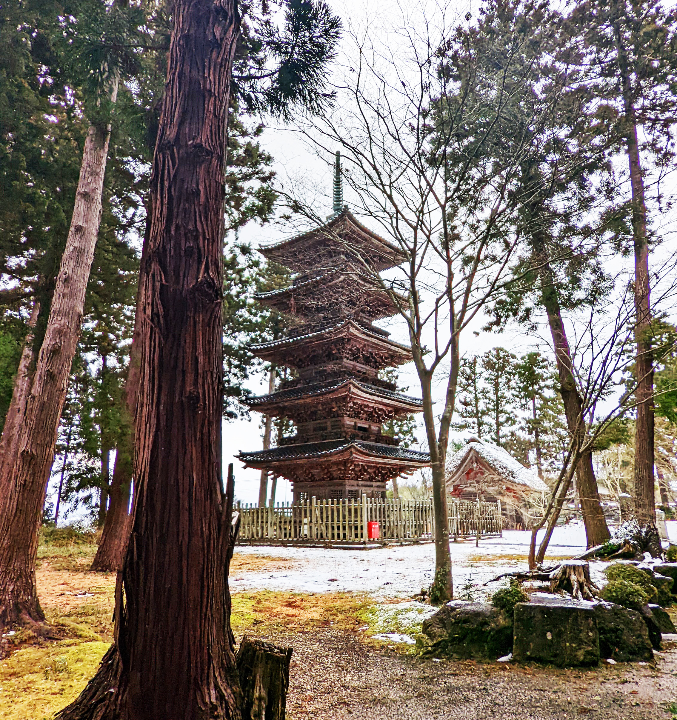 Myosenji Temple is home to the only 5-story pagoda in Niigata Prefecture, which was impressively built by two master carpenters with not one nail or screw in the entire structure. The temple was established around 1278 by a monk of Nichiren Buddhism. Formerly a samurai warrior in Kyoto, he came to Sado accompanying the exiled Emperor Juntoku. The grounds are a calming and peaceful sanctuary, made even more beautiful with a light dusting of snow in the winter months.