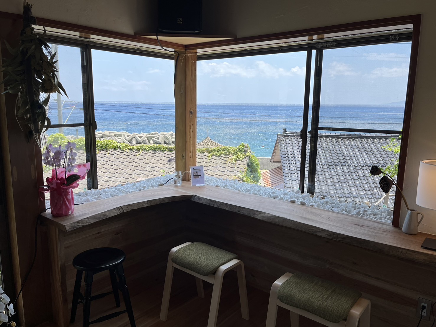 The vast expanse of the sea spreads out before your eyes while behind you stands a backdrop of mountains encasing ancient cedars. Here you can enjoy fishing, sea-bathing and trekking as much as you like. A French cuisine chef, the master offers both French food and makes superb use of locally-sourced ingredients to provide a traditional taste of Sado. The sights and sounds of nature are an absolute delight: breezes blowing through the garden, fireflies flying around, crashing waves, and chirping birds.