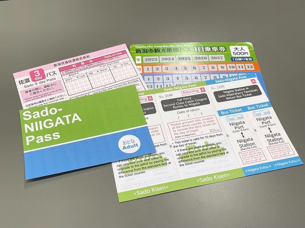SADO NIIGATA Pass is a great-value ticket set that includes a round-trip car ferry ticket with Sado Kisen, the Niigata City Loop Bus, and a 3-day free pass for buses in Sado City. It is available exclusively to international visitors. You can apply online and pick it up at the Niigata City Tourist Information Center. Special offers at participating shops are also available with the bus tickets.