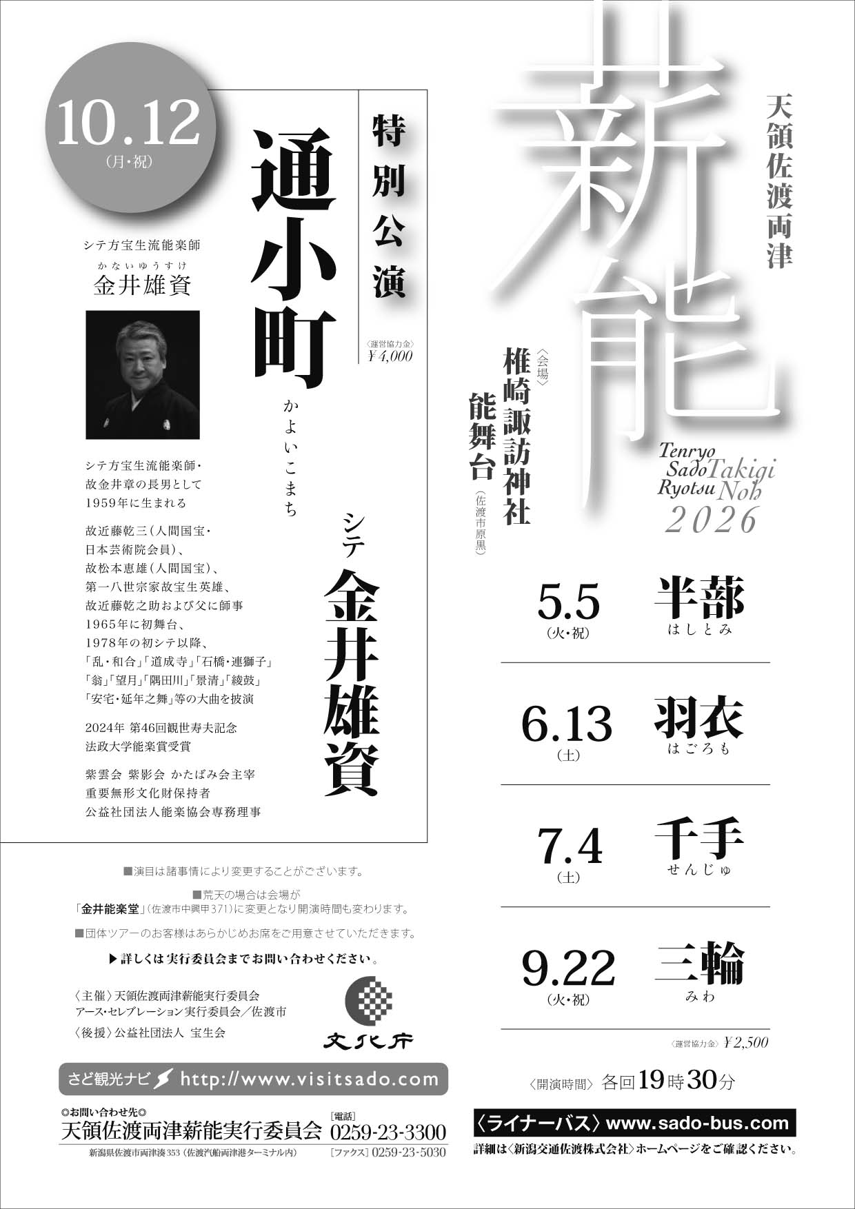 - 10月 天領佐渡両津薪能 特別公演(演目:通小町) (10月12日)