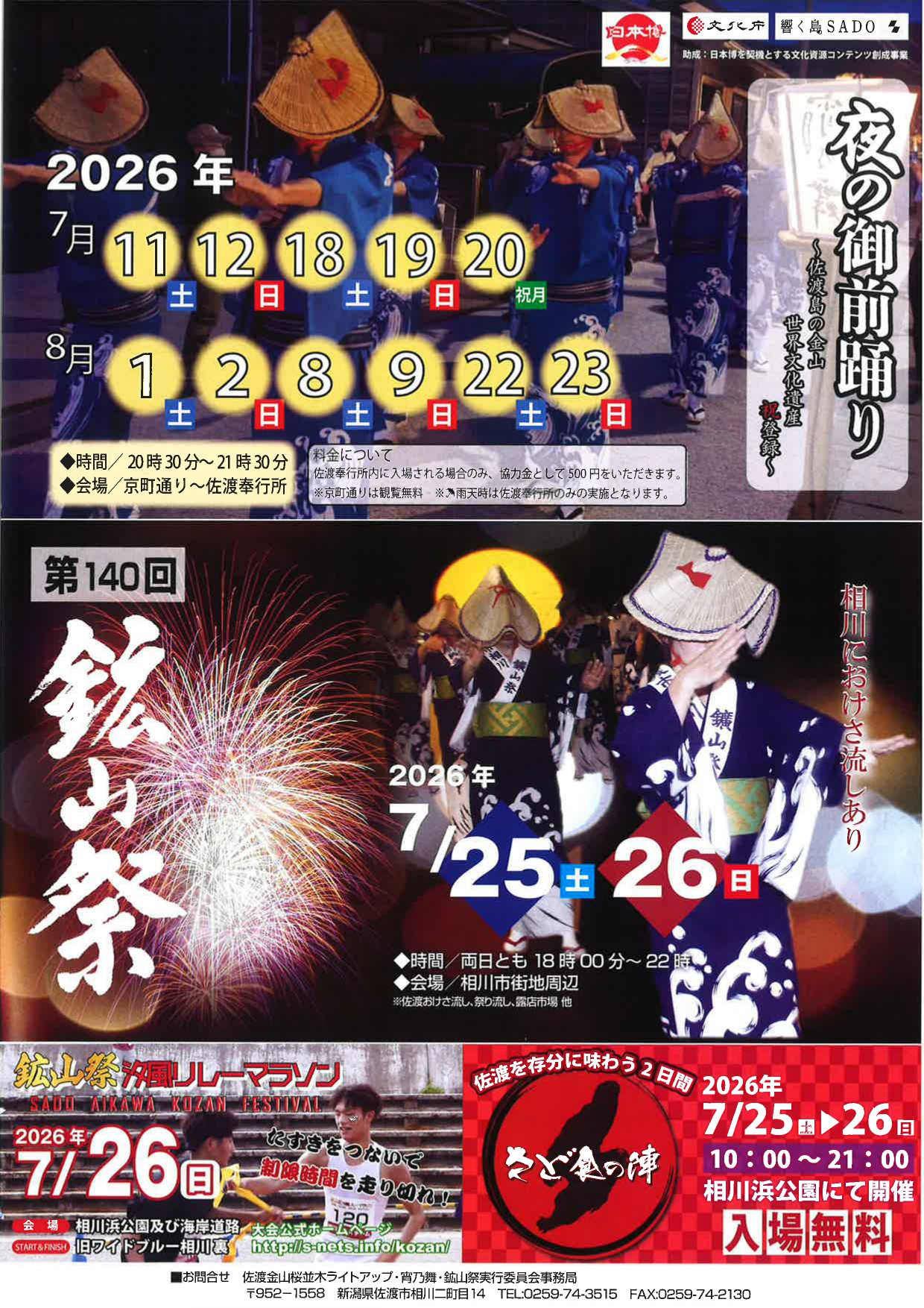 - 夜の御前踊り (7月11、7/12、7/18、7/19、7/20、8/1、8/2、8/8、8/9、8/22、8/23)