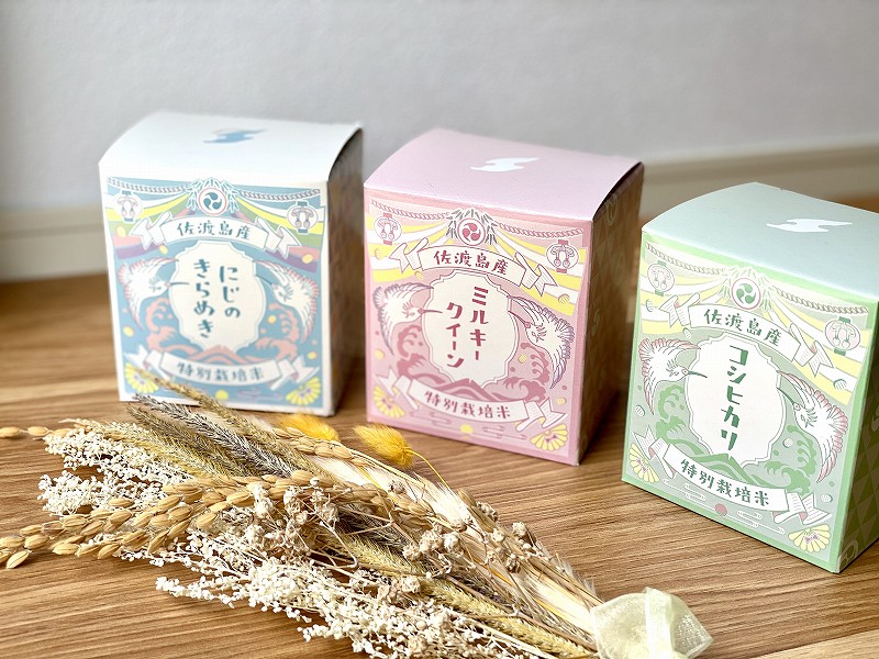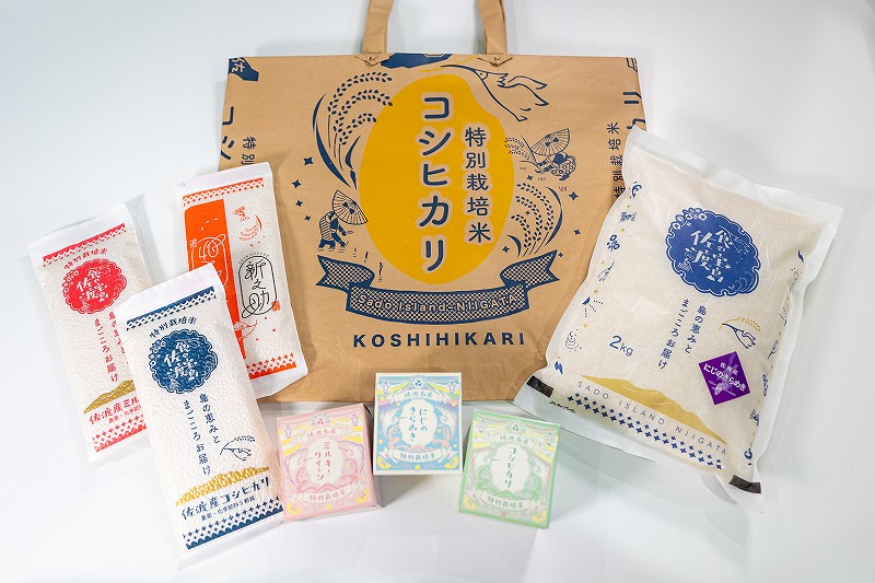 同じ品種のお米は2kg〜25kgのサイズから、食の宝島佐渡のオンラインショップでも販売。カラダを大事にしながらおいしいお米が食べたいと思った時、ぜひ手に取ってもらいたい商品です。