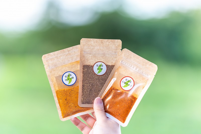初めての方にまず試していただきたいのが、使用している唐辛子や胡麻、塩もすべて佐渡産の「七味唐辛子」。卵かけご飯にパラリも良し、マヨネーズと混ぜて佐渡の焼きイカをディップして食べても良し! 肉や海鮮の味変にぴったりの「山椒」も、BBQなどで大活躍の商品です。