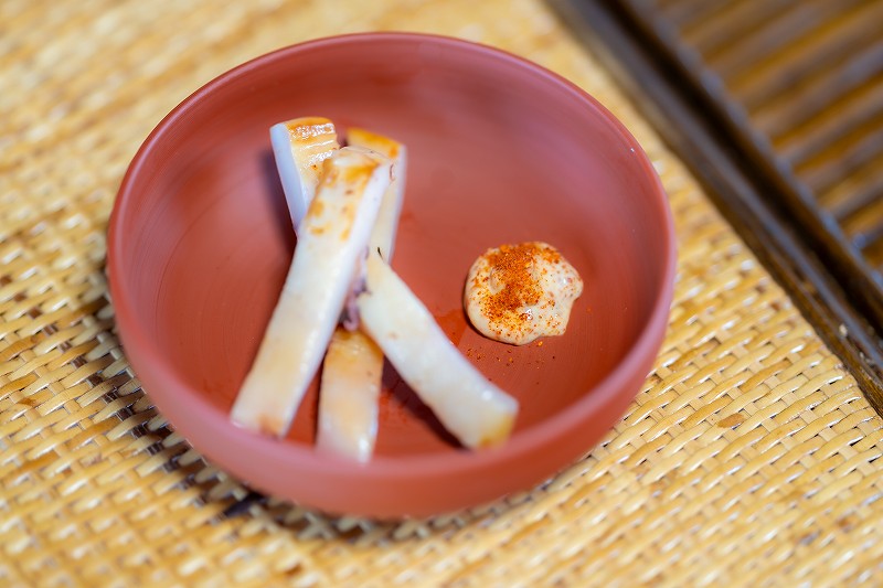 毎日の食事でも親しまれているいごねりには「巻いごねり」と「角いごねり」の二種類があり、佐渡島内では巻いごねりにお醤油をかけるのが主流。幅を太く切ると香りを、細く切るとタレとよく絡んだいごねりの味を楽しめます。