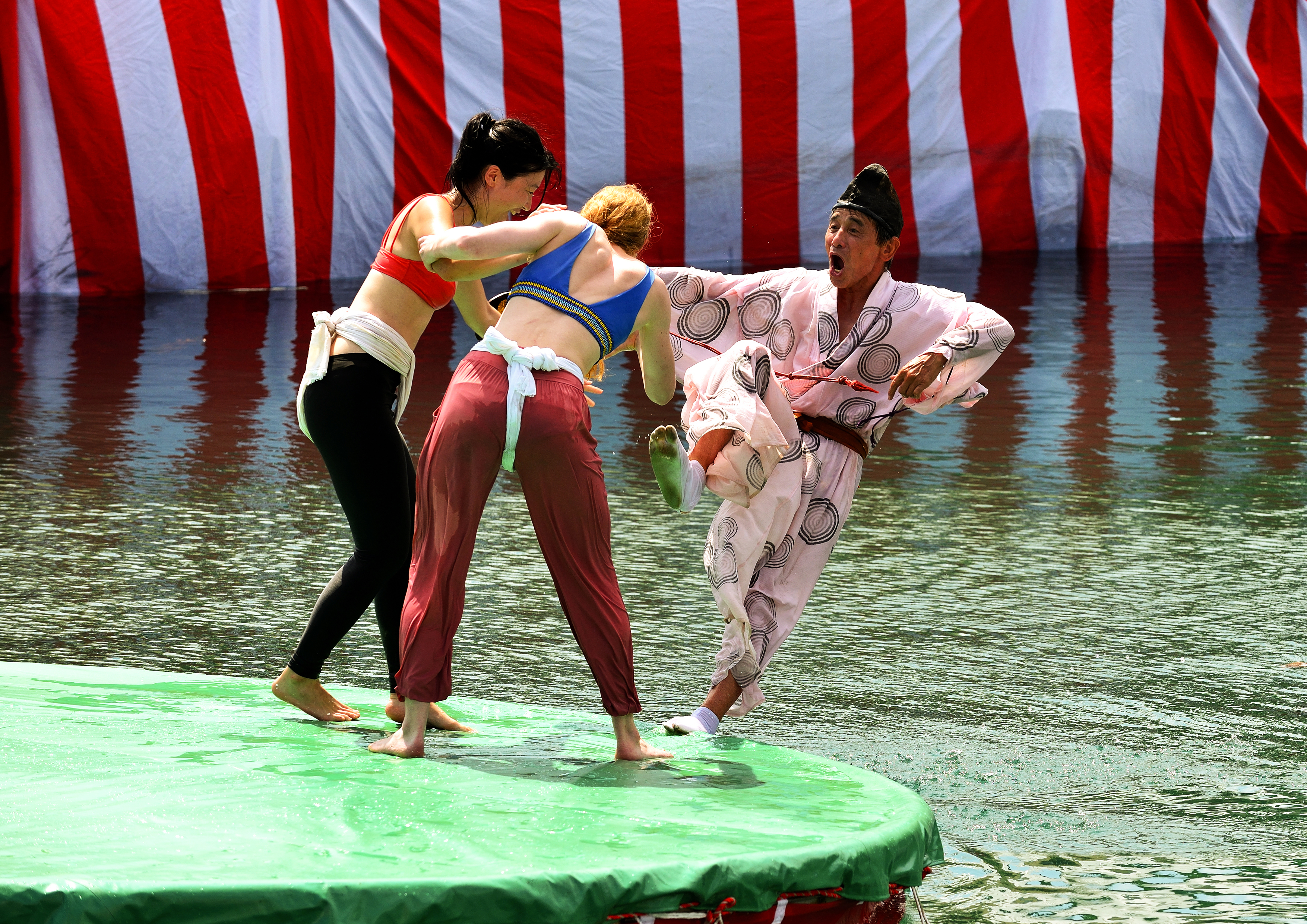 「鉱山祭」の翌週、佐渡南部の赤泊港で開催される「赤泊港まつり」の見どころといえば、なんといっても海上大相撲!海に浮かべた土俵で相撲をとるユニークさに対して、参加者たちは真剣そのもの。観客の応援の声を背に、水に濡れた不安定な土俵で滑ったり転んだりしながら、会場全体が盛り上がるプログラムの一つです。老若男女問わず、どなたでも参加できるので、興味のある方はぜひ勇気を持ってエントリーを!