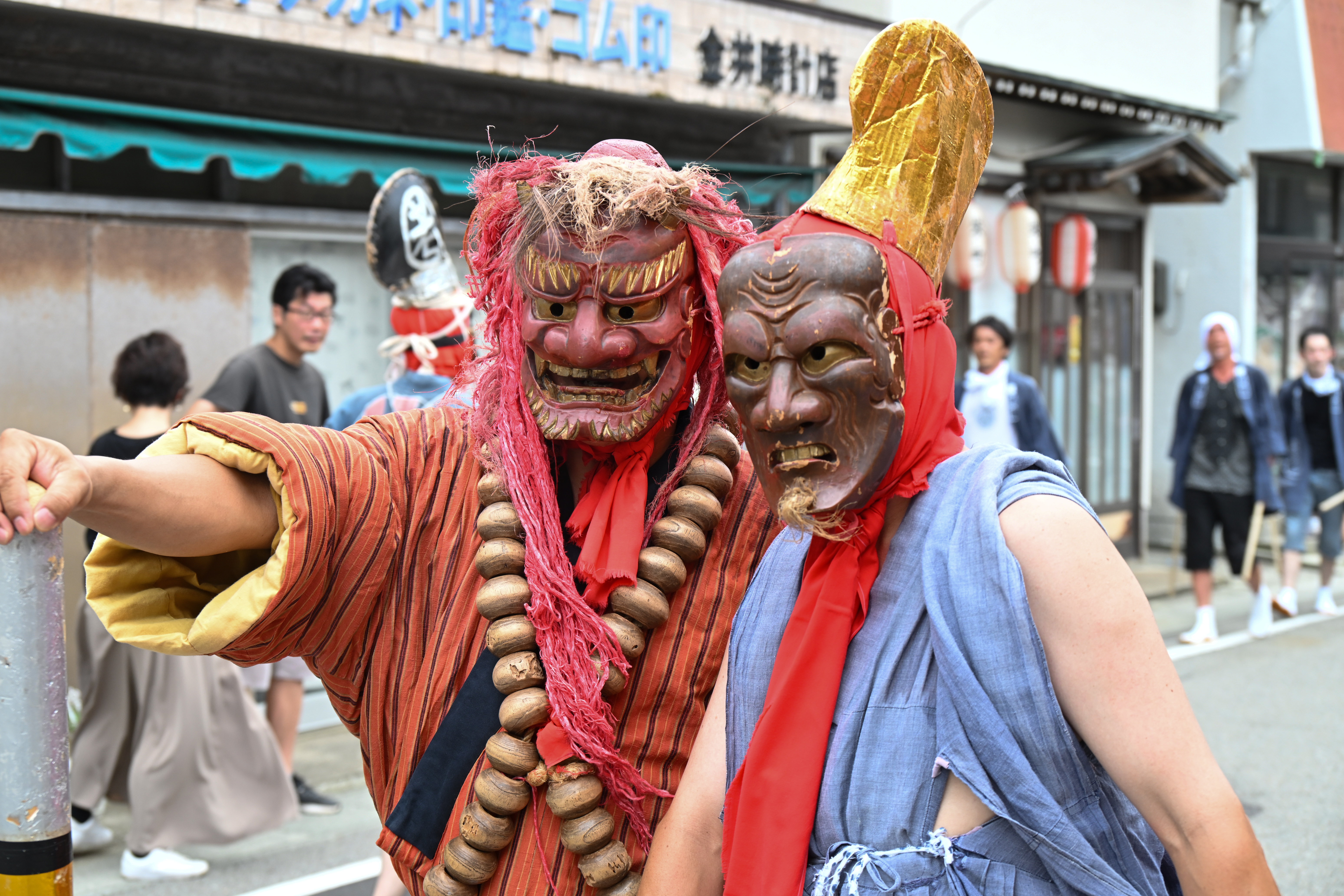 両津夷商店街にずらりと並ぶ屋台の出店はもちろんのこと、鼓笛隊の演奏、子ども山車パレード、民謡流し、佐渡人形芝居、鬼太鼓の競演など、催しが盛りだくさん。2025年は「さどの島銀河芸術祭2025」とのコラボ企画として、両津の昔のにぎわいを写した思い出の写真を展示する『商店街写真展「あのころの両津」』も開催されます。