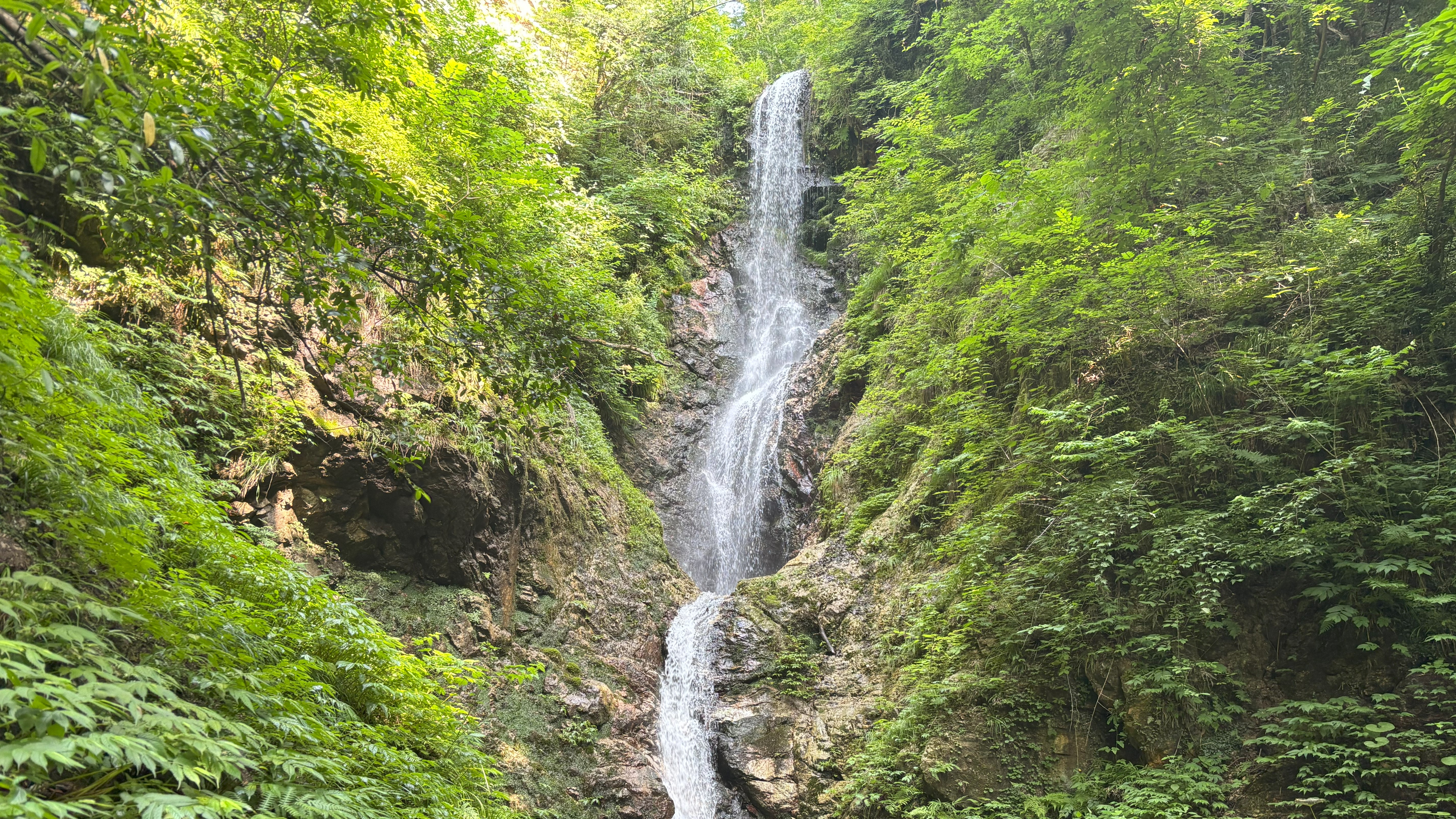 海を楽しんだあとは、山の中にある神聖な滝へ。養老の滝へは岩首昇竜棚田に向かう道から川沿いを進み、車を停めたあと、坂道を3分ほど歩くと辿り着きます。木々の合間から降り注ぐ日光が川の水面にキラキラと反射する光景は、その先にある滝と併せてなんだか神秘的な景色。川に手を伸ばすと夏でも冷たい水に触れることもできます。また、毎年4月と10月には「不動堂祭り」も開催されています。神主さんとともに滝に入って般若心経を読み上げたり、不動堂に移動して護摩焚きをしたり。タイミングよく訪れた際には、ぜひ覗いてみてください。「養老の滝公園案内図」を見ながら、緑と水を感じながらの散歩も楽しんでみてはいかがでしょうか。