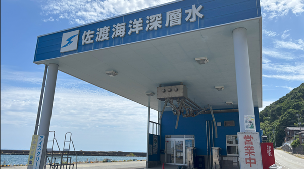 佐渡出身動画クリエイターの影響で一躍有名になった、「佐渡海洋深層水」。その分水施設が今、密かに人気を集める観光スポットになっています。軟水・中硬水のペットボトル飲料水はもちろん、海洋深層水から取り出したミネラル豊富な100%天然塩を使用した「塩もなかアイス」を買う方の姿も。塩バニラ味で、中に入っているコシヒカリのつぶつぶとした食感がアクセント! 分水施設では海洋深層水の購入も可能。「脱塩水」は調理用水に、「原海水」は稲作や水産利用に、「濃縮水」は塩造りや塩干物に、「高ミネラル水」はお風呂や果樹栽培などに利用できるなど、スタッフの方がパンフレットとともに丁寧に教えてくださいました。どの海洋深層水も20リットル100円で誰でも購入することができます。