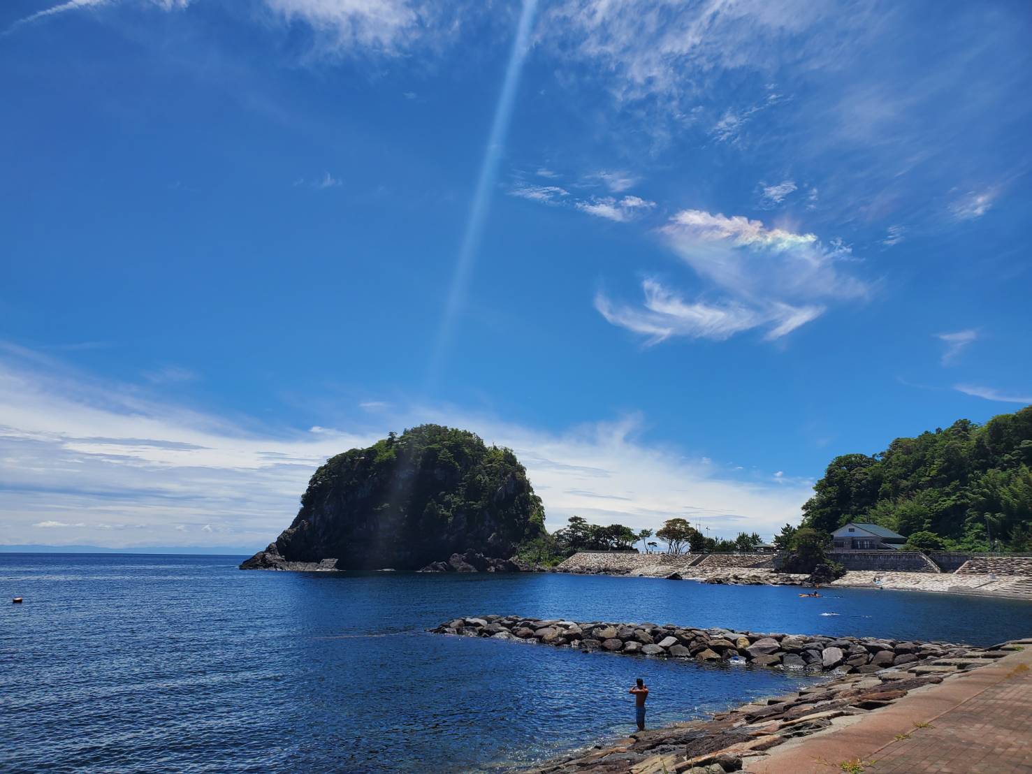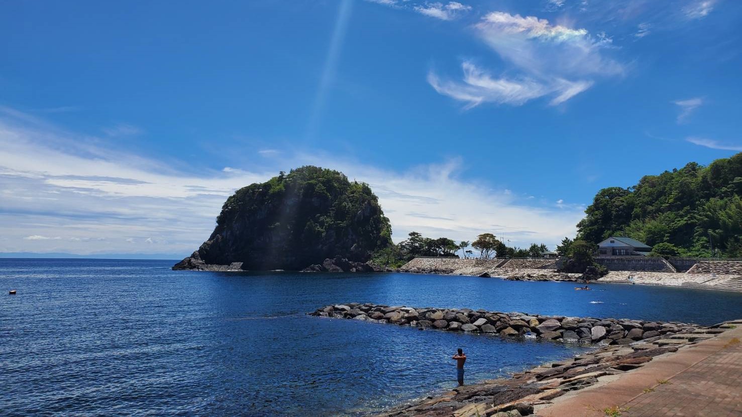 両津港から海沿いに車を走らせること20分、赤亀風島なぎさ公園に到着。海上に突き出した「風島弁天」の大きな岩が目印です。道沿いにある鳥居をくぐり、赤い手すりを頼りに登っていくと岩のてっぺんまで行くことができますが、急勾配の坂道・石段なので、登る際には要注意。公園内には無料のフリーサイトがあるキャンプ場と海水浴場があり、観光シーズンには多くの海水浴客で賑わっています。トイレは通年利用できますが、更衣室とシャワーは海水浴場開設期間中のみご利用いただけます。海水浴場は砂利浜なので、怪我防止のためサンダルは忘れずに! 釣りや海水浴、海を眺めてBBQなど、ゆったりと過ごすことができます。