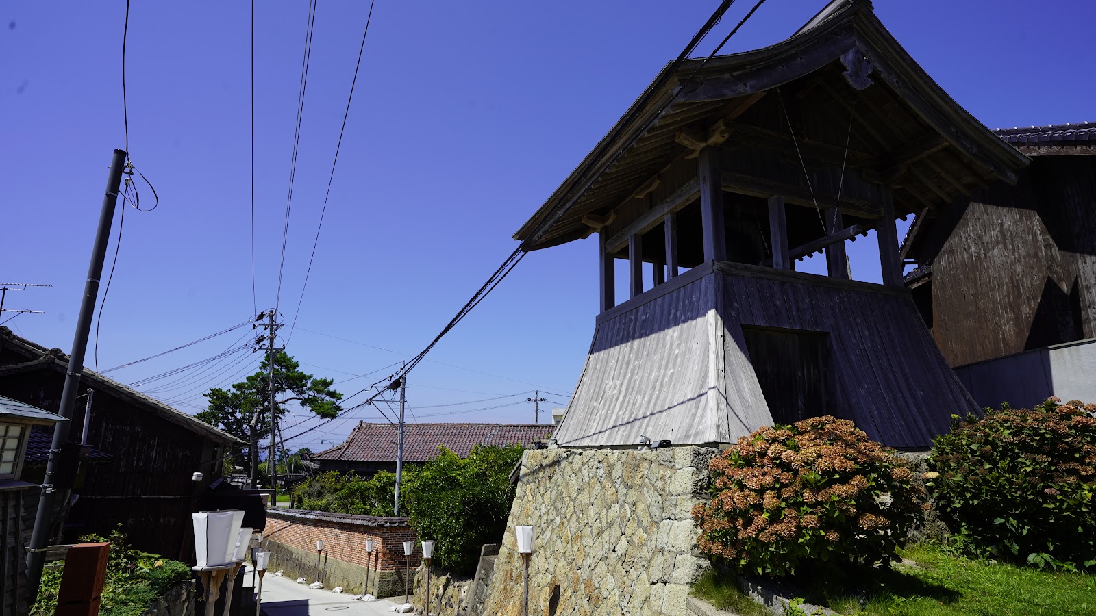 また、鐘楼の後ろには相川の町を一望できる景色が広がり、周囲には八百屋町の横井戸に繋がる「長坂」や、下町と上町を結ぶ坂道として利用者が多かったという「西坂」があります。