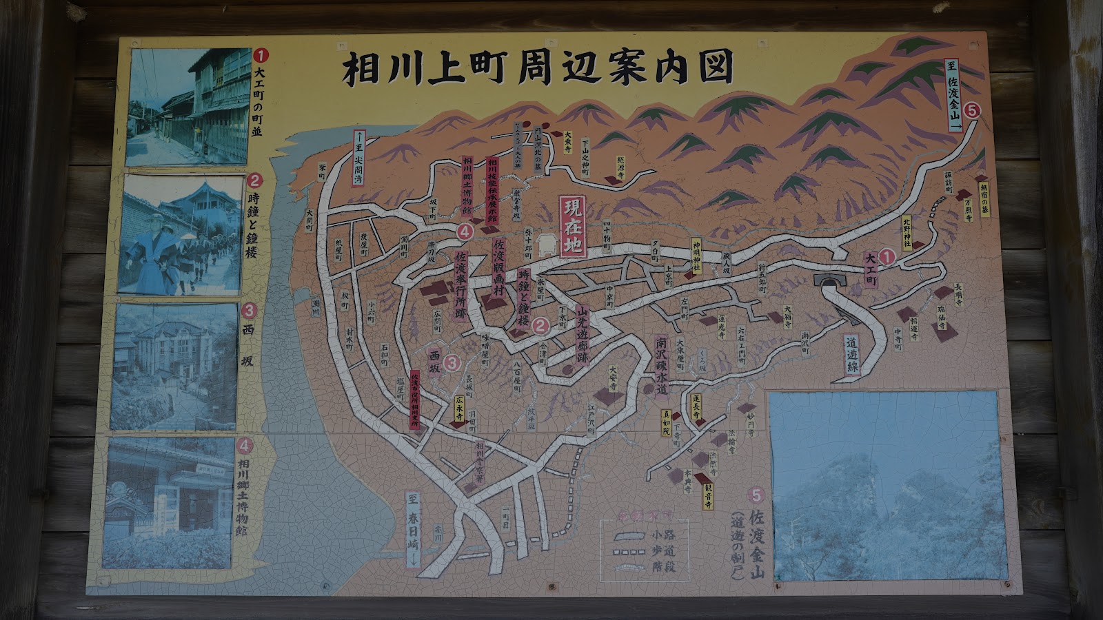 相川では大工と呼ばれていた金銀山の抗夫たちが住む「大工町」や、鉱山経営を行った山師の名前が付いた「新五郎町」など、当時の相川の様子がうかがえます。