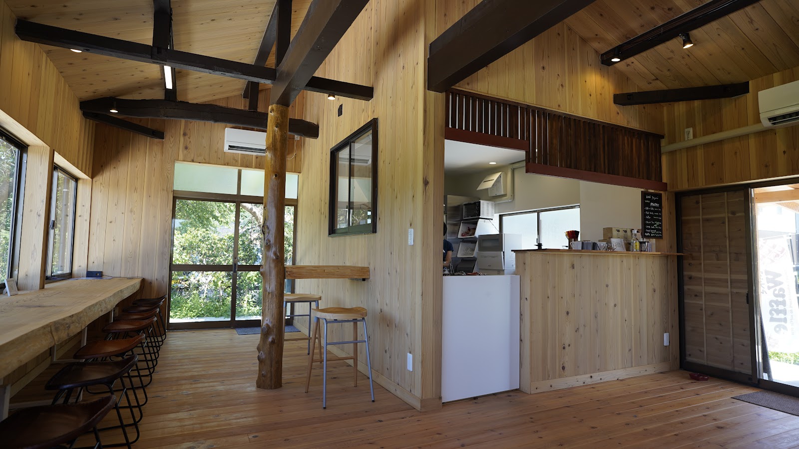 パノラマ風景が広がる窓からは、相川の海や自然を一面に見渡すことができ、時間を忘れてのんびりしてしまいそう。テラス席は写真映え間違いなしです。