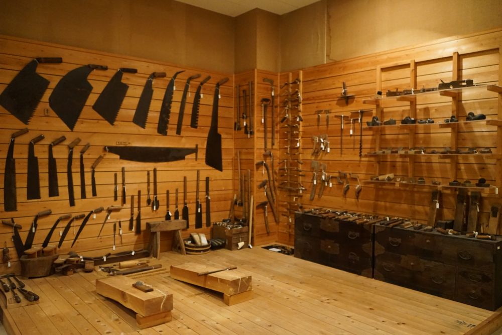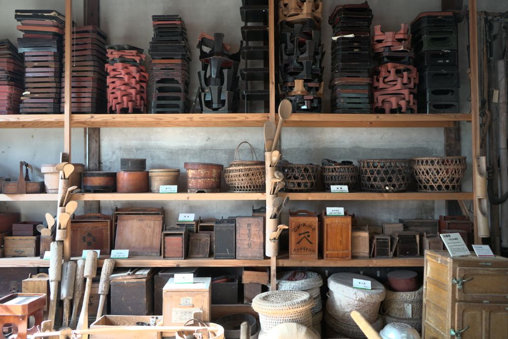 展示されている道具の数々は、すべて手作りで、職人たちの丹精込めた技術が日常の中でどれほど重要だったのかが伝わってきます。特に印象的なのは、直径3メートルにも及ぶ巨大な味噌樽。実際に使われていたものを目の当たりにすると、当時の人々の生活が一層リアルに感じられます。この味噌樽は、今ではフォトスポットとしても人気なので、記念に一枚撮影してみてくださいね。