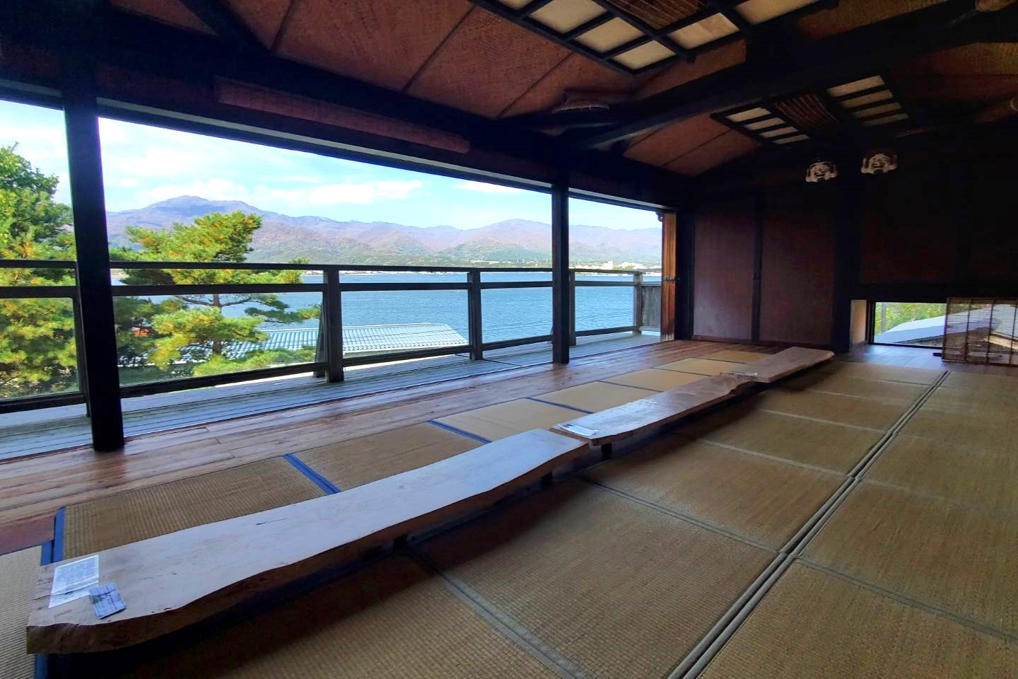 宿泊者専用の個室貸切露天風呂「湯楽長屋」。2階のお休み処では耳を澄ますと加茂湖からの波音が聞こえてきます。夏は窓が解放されるので湯上りに気持ちのいい風を浴びながら無料の冷たい麦茶を飲みつつのんびり。肌寒くなる時期は暖かいお茶が提供されます。