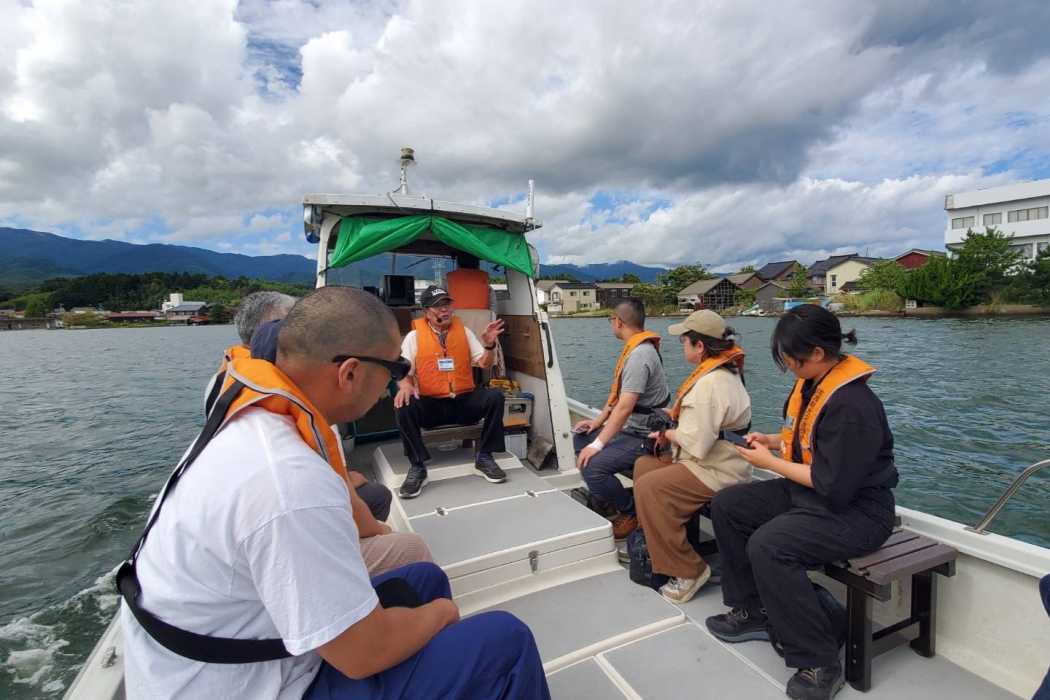 両津の町を深く学ぶ! 両津港の目の前から出航し、両津の町を加茂湖からぐるりと遊覧するプレジャーボートに乗りませんか? 「両津という町の名前の由来」「夷町・湊町の昔の姿」「加茂湖の魅力」など、両津の町歩きガイドさんが話すことは佐渡の人でも知らないことばかり。遊覧船を楽しんだ後はぜひ町歩きも。