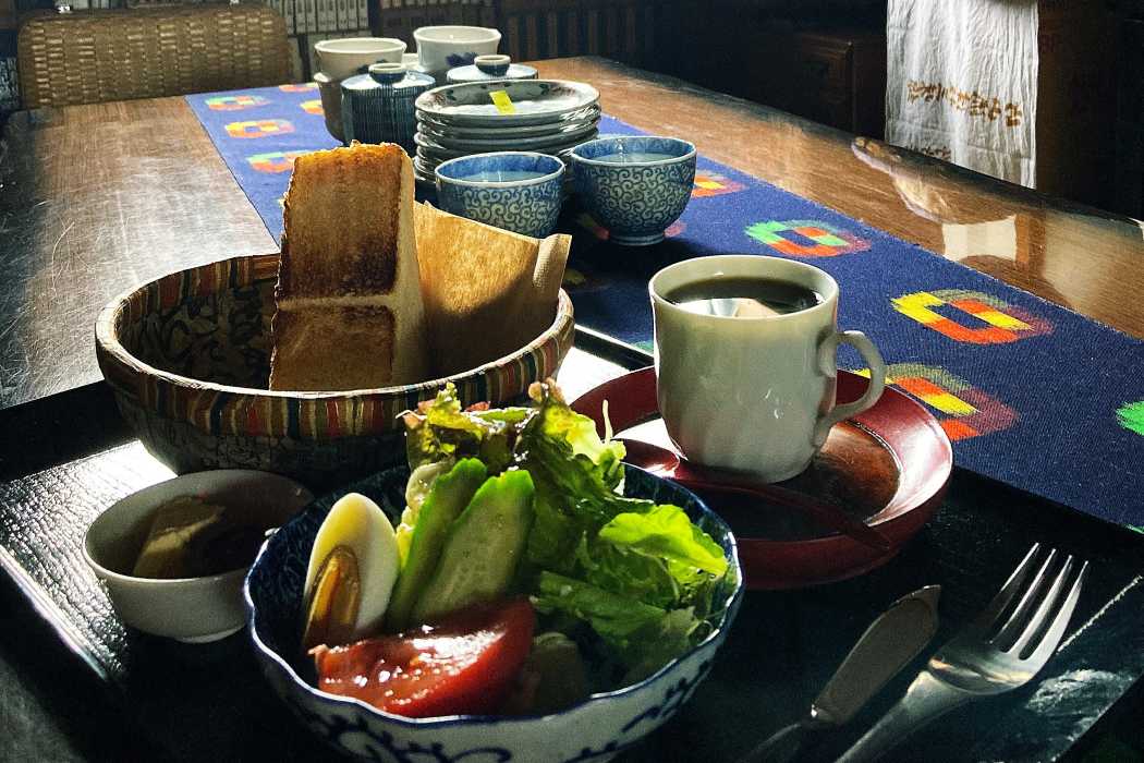 印判皿や一閑張を使ったモーニング。懐かしさと温かさが詰まったセットになっています。