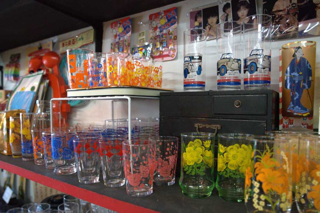 「世代によって同じ品物でも見え方が違い、おばあちゃんには昔使っていたもの、お母さんにはこどもの頃の思い出、孫には新鮮なレトログッズになるんですよ」と須田さん。近年、再ヒットしている昭和レトロなガラスの器「アデリアレトロ」も多数並びます。