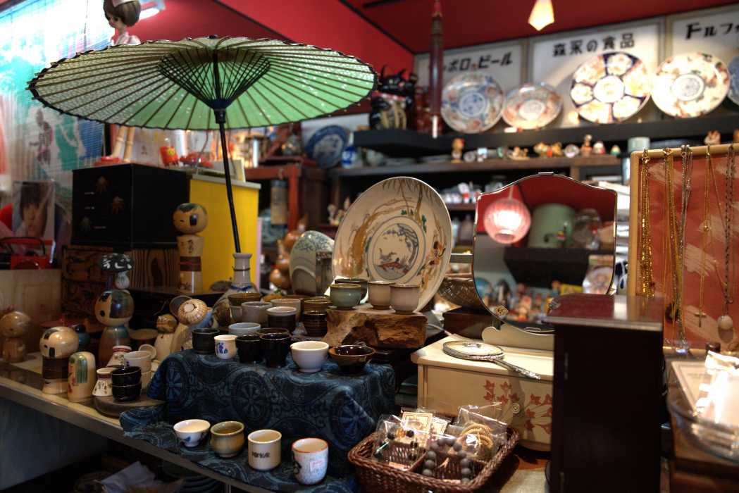 明治〜昭和初期の瀬戸物や重箱も数多く並び、年配のお客様にとっては “生活の記憶” そのもの。お客さん同士が思い出を話し合って盛り上がることもしばしば。