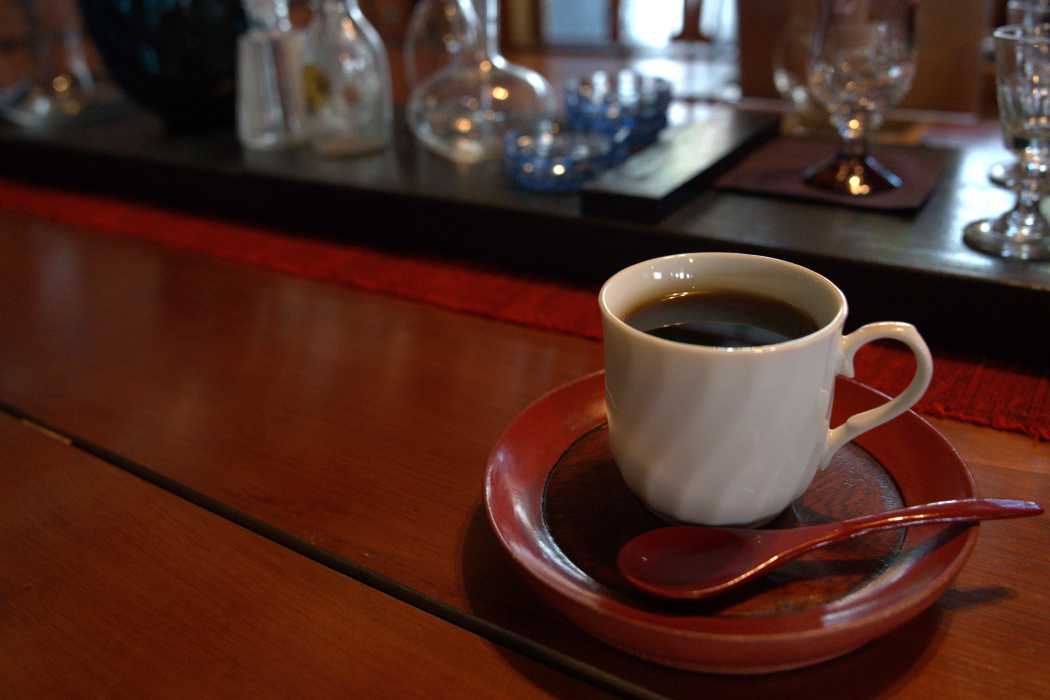 駐車場は4台分。観光で立ち寄る人にも行きやすいのが嬉しいところです。選び抜いた珈琲をじっくり楽しんで。珈琲は漆塗りのソーサーで提供。