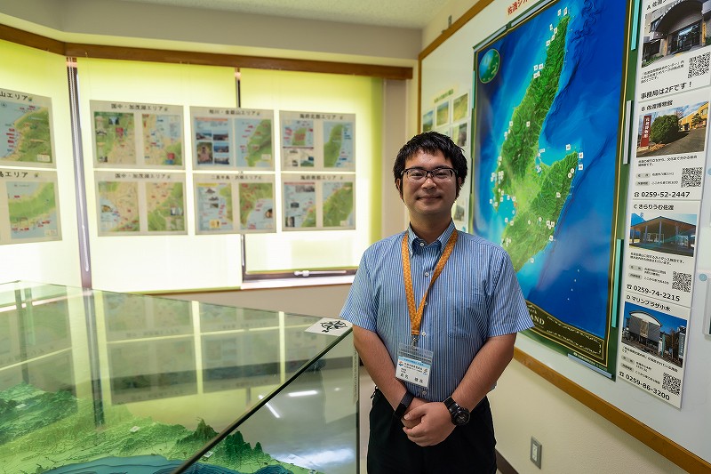 茨城県出身。大学で断層を専門に学んだ後、2016年に佐渡へ渡り、現在はジオパーク推進室の学芸員として勤務しています。ジオパークとは、私たちの生活の成り立ちが大地や自然とどう関係しているのかを見つめ直すきっかけを作り、地域にあるものの価値と、その意味を地元の方を中心にお伝えしていく活動です。
