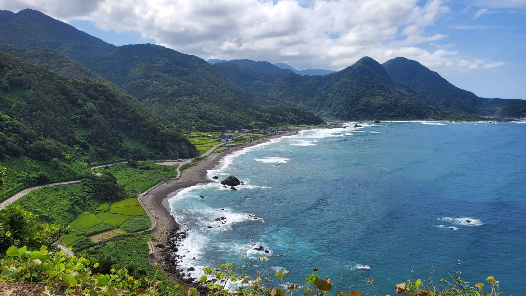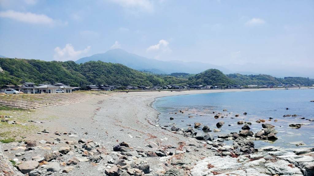 「このあたりでおすすめの場所は?」という質問に、「旅荘みなと」の石塚さん、「高千カフェ」の平田夫妻がそろっておすすめしてくれたのは「入崎(にゅうざき)海水浴場」。透明度が高く、夏には隣接するキャンプ場とともに海水浴キャンプを楽しむ観光客でにぎわうスポットです。