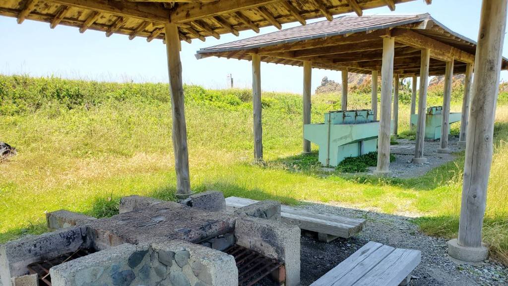一周約20分の遊歩道は「ミシュラン・グリーンガイド・ジャポン」に掲載されるほどの絶景です。歩いた後の休憩はぜひ「大野亀ロッジ」で。ドリンクやソフトクリームのほか、地魚を使った海鮮丼や定食を楽しめます。天気の良い日はぜひテラス席でお過ごしてみてください。