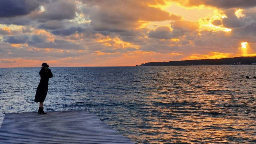 「La plage」 から佐和田海水浴場沿いを歩いて10分ほどの「あめやの桟橋」は、今や佐渡観光では外せないフォトスポット。最近ではウェディングフォトを撮影している様子も見かけることが増えてきました。