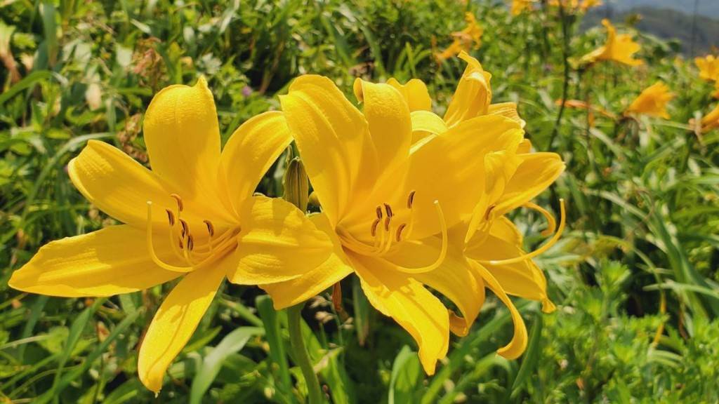 標高167mの一枚岩が海に向かって突き出している姿が亀に見えることから、この名前が付けられました。山形県飛島と佐渡のみしか自生していないユリ科の多年草「トビシマカンゾウ」の群生地としても名高く、見頃である5月下旬から6月上旬にかけては多くの観光客が大野亀を訪れます。