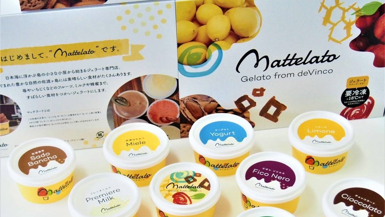 せっかくお店に足を運んだならぜひ注文していただきたいと紹介されたのは、デビンコ横の小さな小屋でとっておきの手作りジェラートを販売する「マッテラート」のジェラート! イチゴ・レモン・さくらんぼ・ネクタリン・いちじく・シャインマスカット・おけさ柿など、佐渡らしい果物を贅沢に使った “まって(佐渡弁でとても)” 美味しいジェラートが6種類以上並んでいます。果物のフレーバーは乳製品や卵を一切使用していないため、子どもも安心して食べられます。小屋は冬期間CLOSEしていますが、デビンコ店内で食べたり、やテイクアウトすることも可能です。