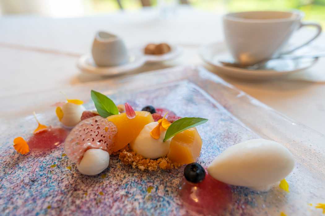 ランチ、ディナーともに予約は不要ですが、メッセージ入りのデザートプレートや花束などのサプライズを希望される方は3日前までの事前相談を。個室も完備されており、二人だけの時間をロマンティックに演出してくれます。さらに2025年には、カウンター8席のみのクラブレストラン「ILE RICHE(イルリッシュ)」もオープン。こちらは3日前までの予約制で、島の豊かさを一皿ずつ丁寧に表現したフルコースが楽しめます。