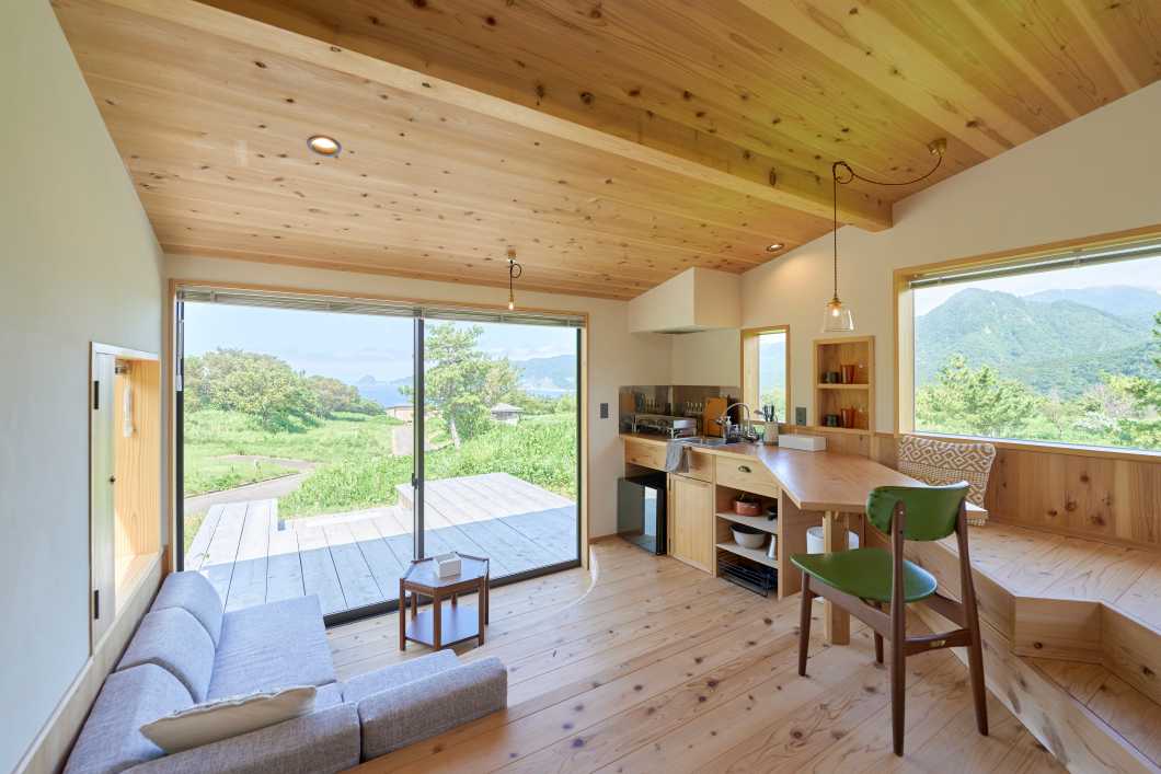「ist - Sado」は、普段の暮らしを自然の中で営むことができる宿泊棟が初心者でも気軽に楽しめると話題の複合型キャンプフィールドです。宿泊棟には2名用の「Hut -nest-」「Nutshell」と、4名用の「Hut -roof-」の計3棟があり、その景色を絵画のように切り取ったそれぞれの窓からは、雄大な自然を感じられます。
