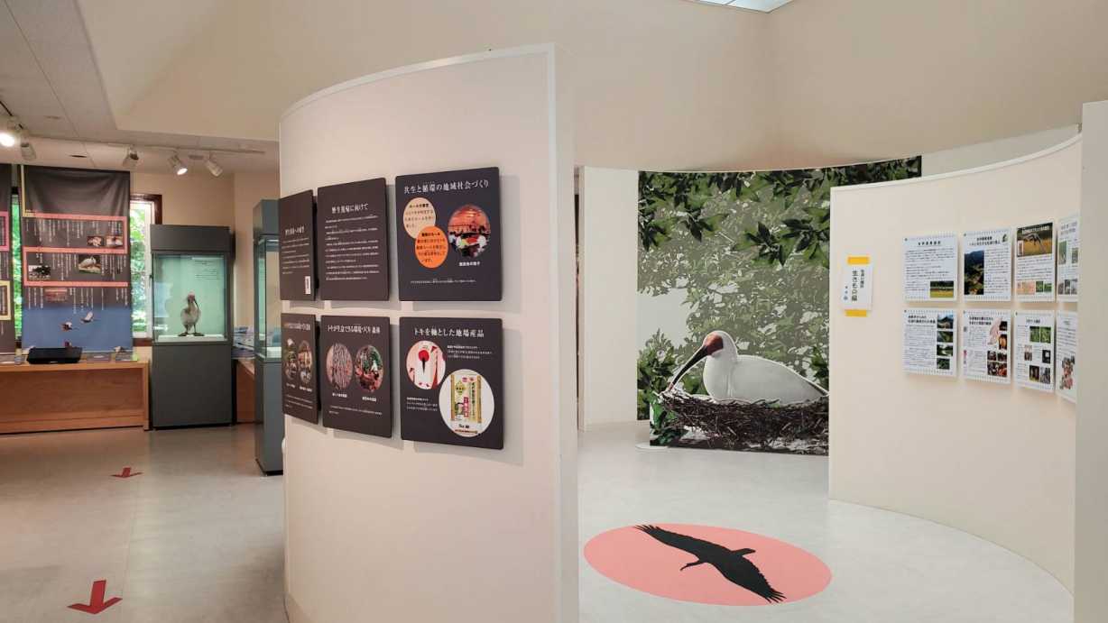 「トキ資料展示館」では、過去から現在までの野生復帰の取り組みについて、子どもにも分かりやすい展示が充実! 特に、トキの重さを実際に体感できるブースや、トキの生態などについて解説する映像上映コーナーは子どもたちに大人気です。