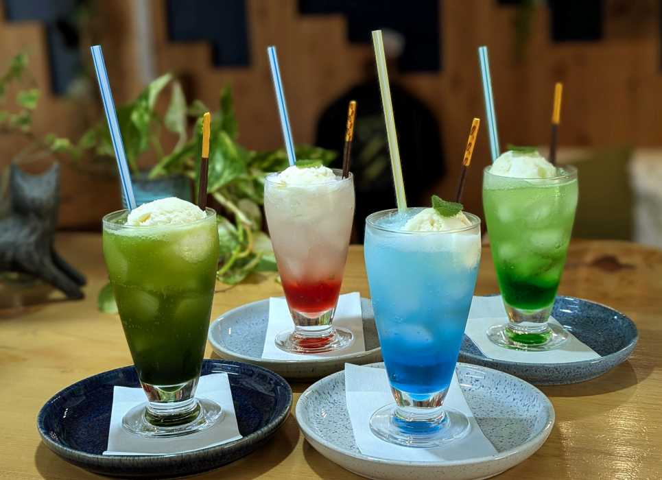 年中楽しめる「かき氷」や、世界中でここだけ!?の「抹茶クリームソーダ」のほか、和子さんの手作り看板スイーツ「芋りんごパイ」にも注目! 秋の実りの季節に合わせて登場する特別な一品で、佐渡産のリンゴとサツマイモのほっくりとした甘い味わいが旅の記憶をやさしく彩ります。