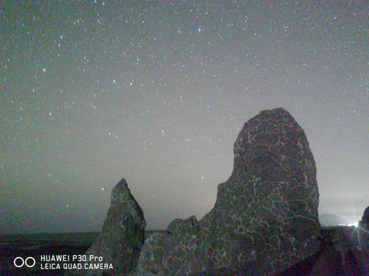 「 万畳敷、麒麟岩と星空 」