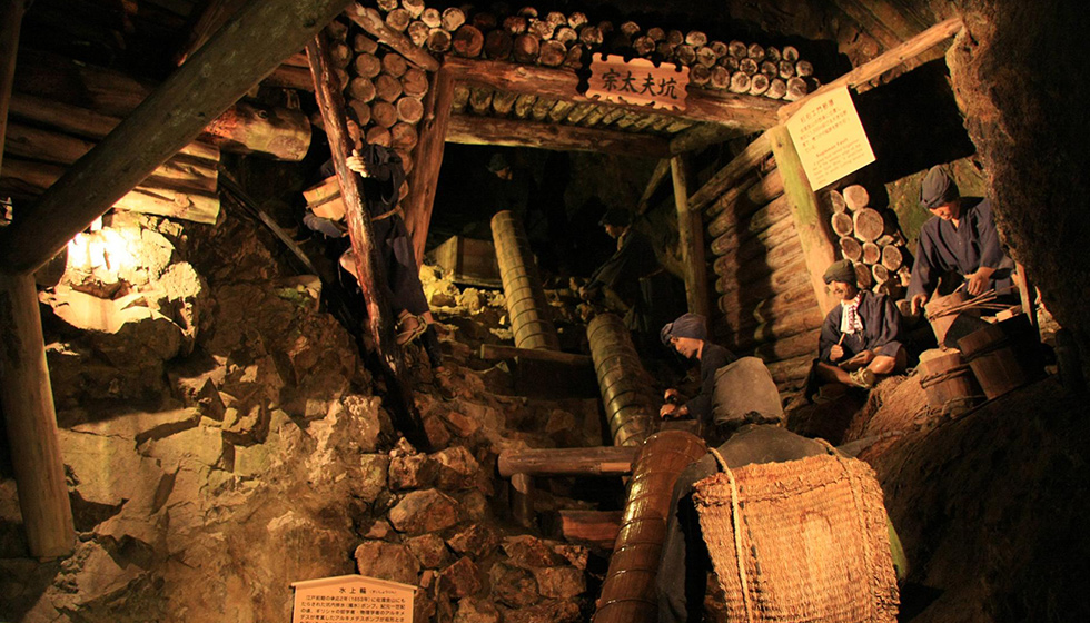 佐渡金山は江戸時代から昭和に至るまで日本最大級の金銀山として栄え、その坑道の総延長は約400kmにも及びます。その一部約300mが現在は観光用に整備されており、江戸時代と明治以降の採掘現場を再現したコースを見学できます。