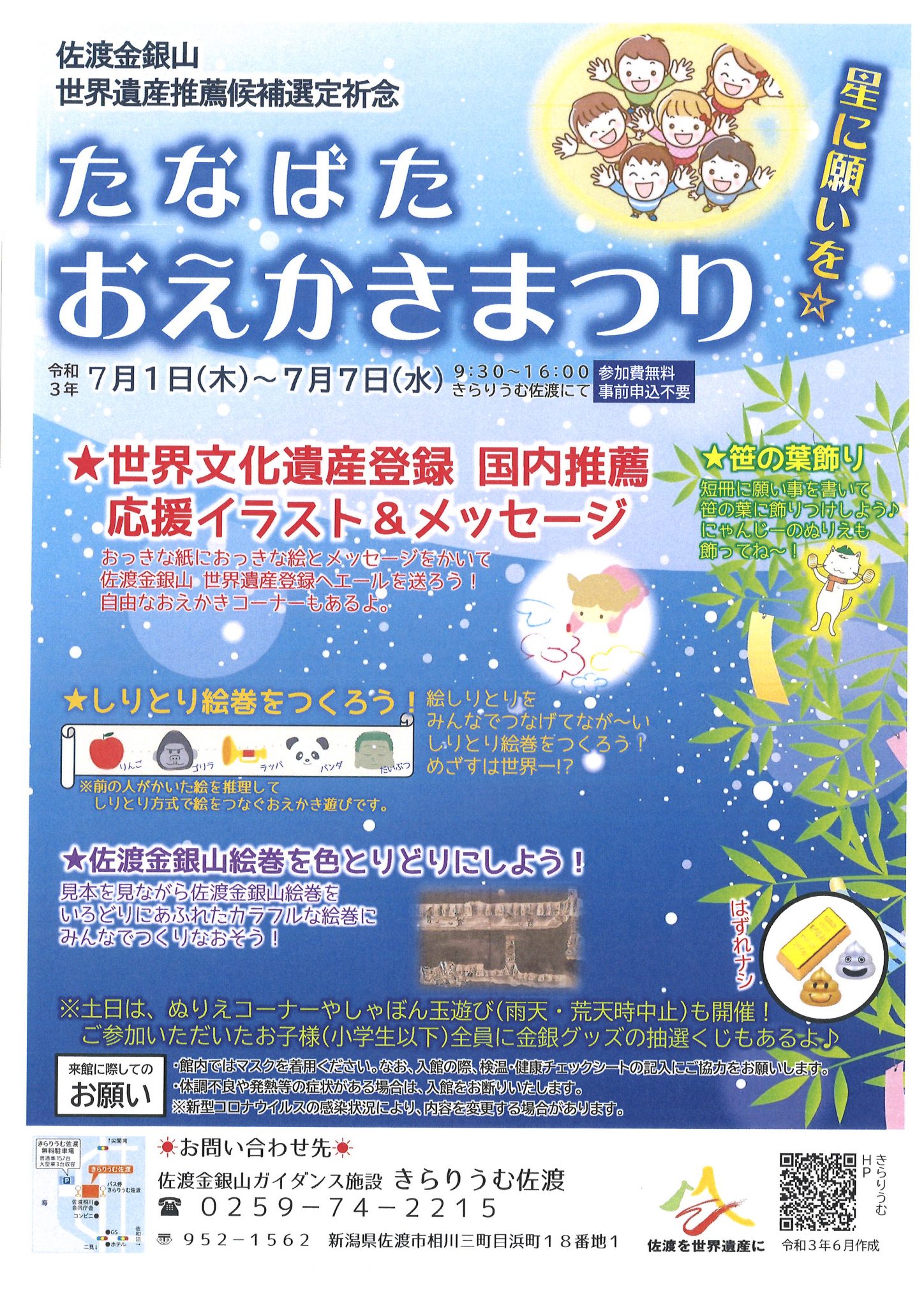 7/1(木)~7(水) 佐渡金銀山世界遺産推薦候補選定祈念「たなばたおえかきまつり」