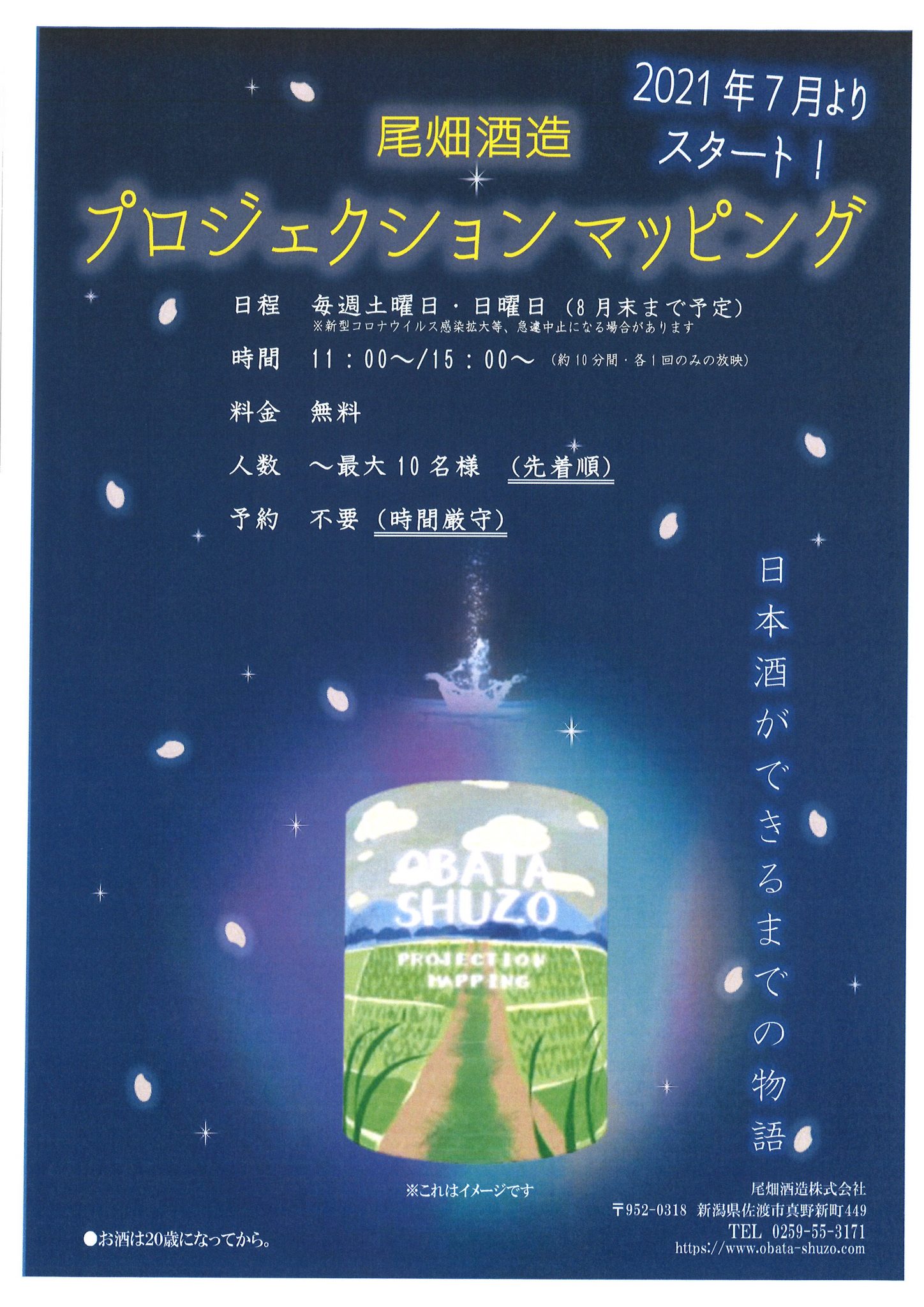 尾畑酒造にて令和3年7月よりプロジェクションマッピングを開催します。