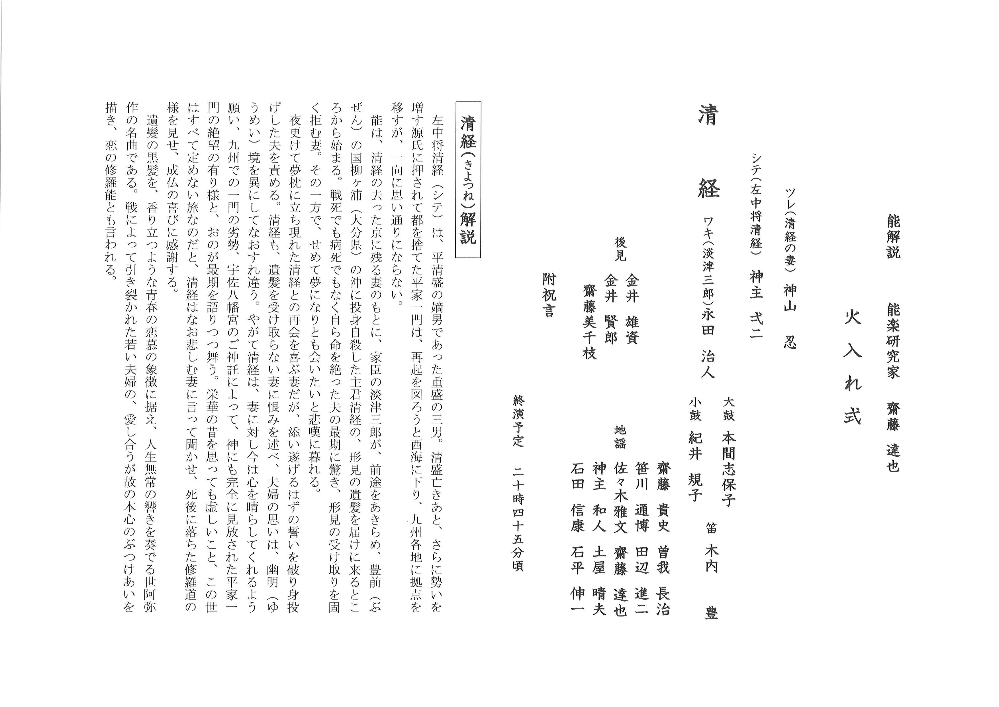 天領佐渡両津薪能 令和4年9月10日(土) 演目「清経」