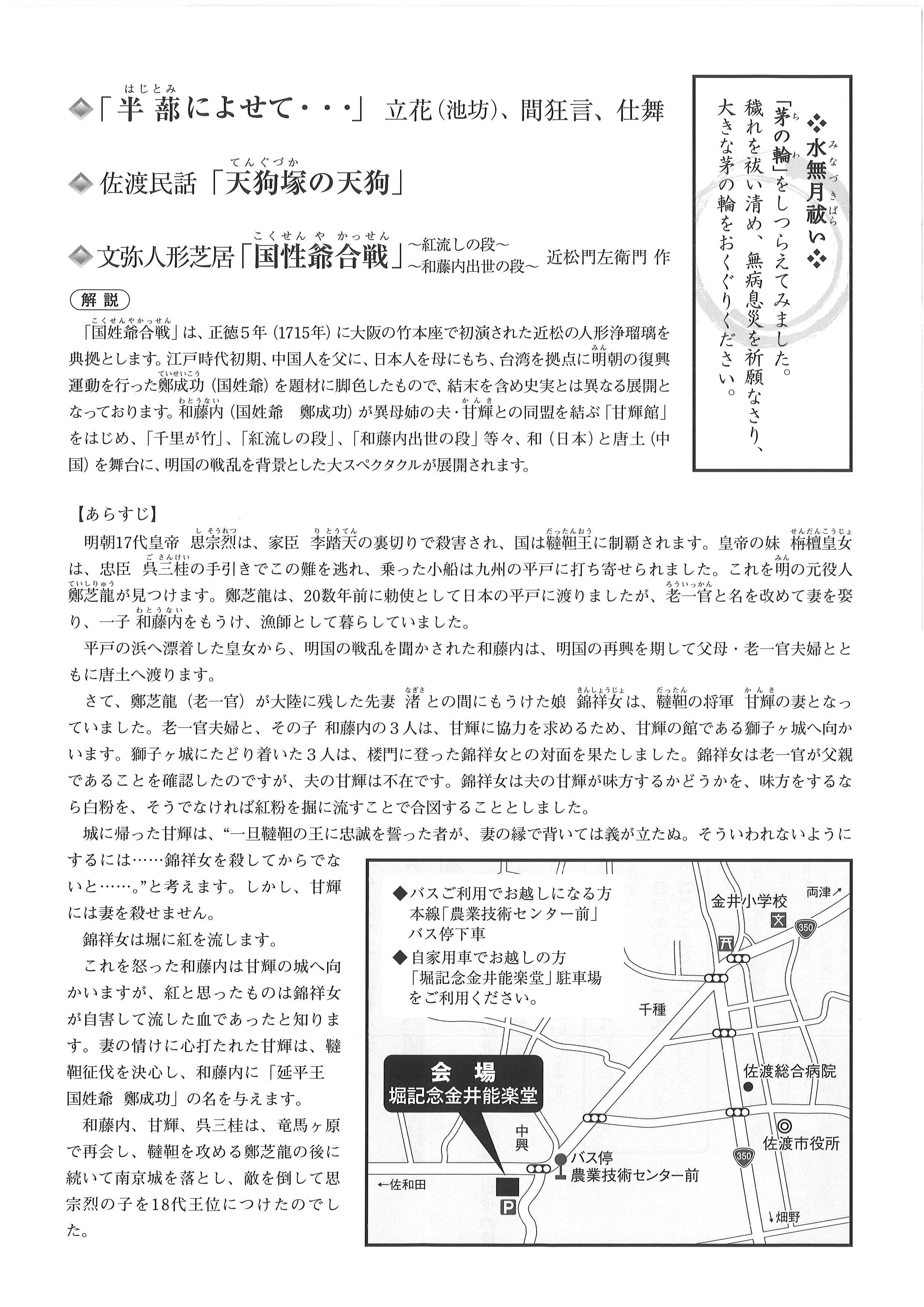 - 佐渡の能を識る会 TEL:090-3229-7586
