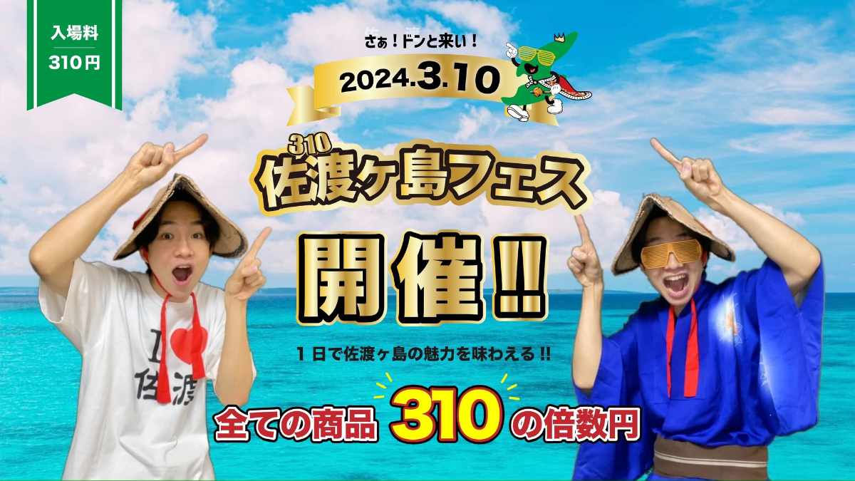 「佐渡ヶ島フェス2024」の開催が決定しました。けえ【島育ち】をイベントプロデューサーに、産品、文化など、佐渡の魅力がいっぱい詰まった楽しいフェスが開催されます。けえ【島育ち】と一緒に佐渡の日の新しいフェスを作りましょう!詳細は、公式ページをご覧ください。