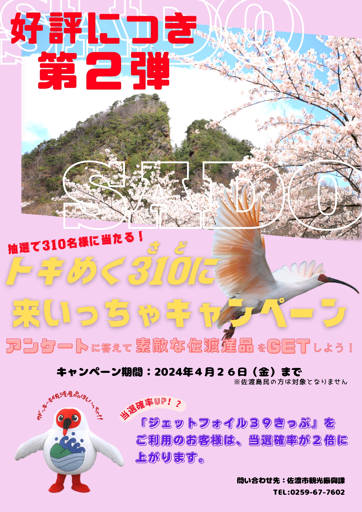 【好評につき第2弾】素敵な素敵な佐渡産品が抽選で当たる!トキめく310(さど)に来いっちゃキャンペーンを開催します - 新潟県佐渡市公式ホームページ (city.sado.niigata.jp)