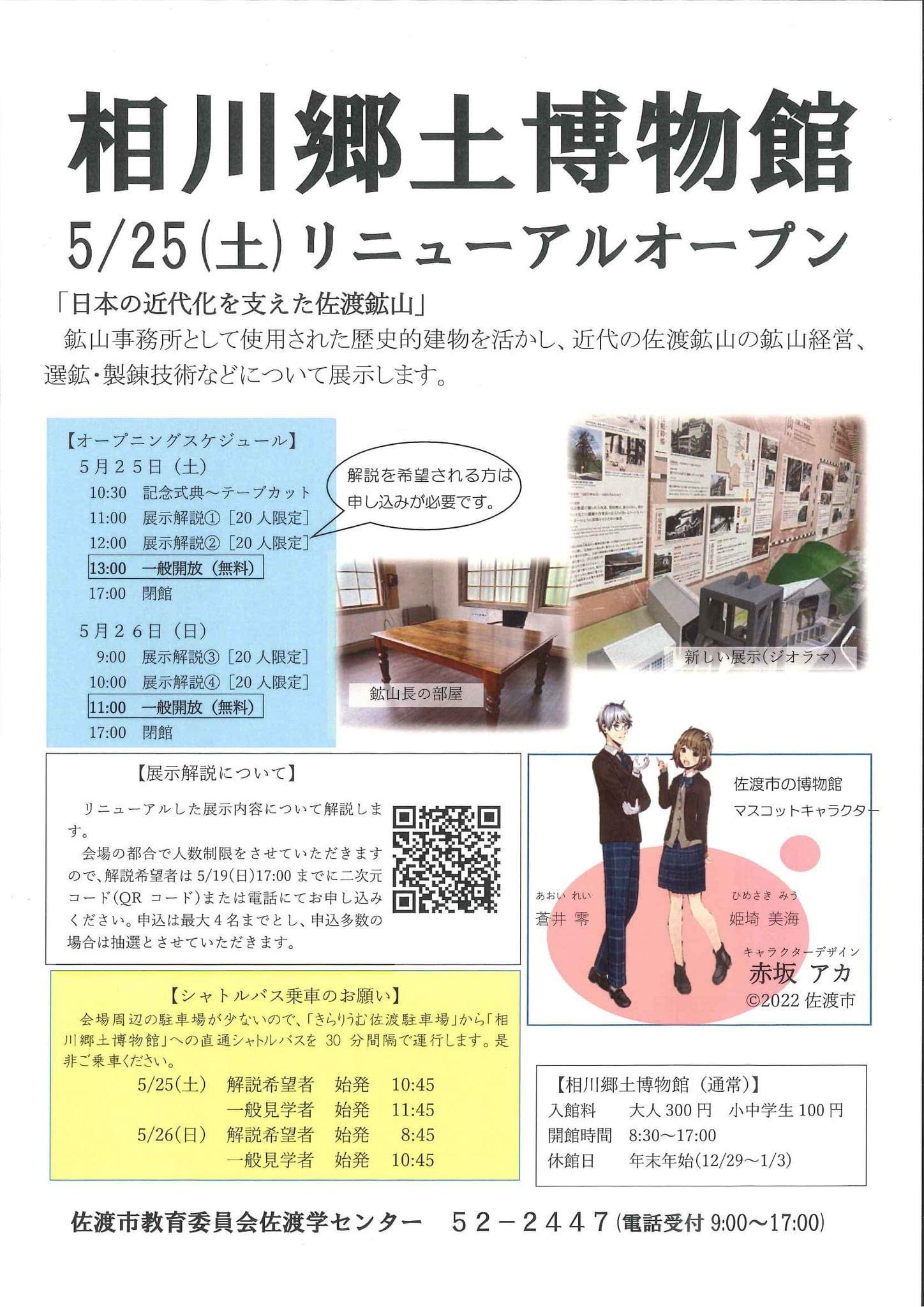 - 相川郷土博物館リニューアルオープンのお知らせ