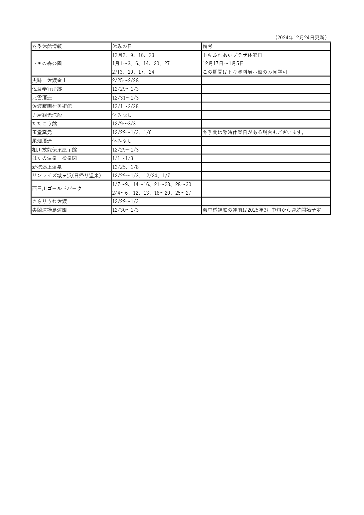 観光施設や博物館の冬季休館情報です。冬季の休館にご注意ください。