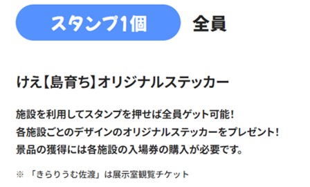 対象施設に入場し、デジタルスタンプを押すと、けえ【島育ち】限定ステッカー(全6種類)が必ずもらえます。